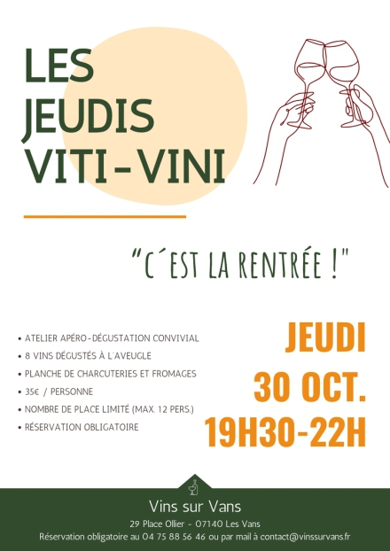- Réservation obligatoire par téléphone 04 75 88 56 46, par mail à contact@vinssurvans.fr ou directement à la cave